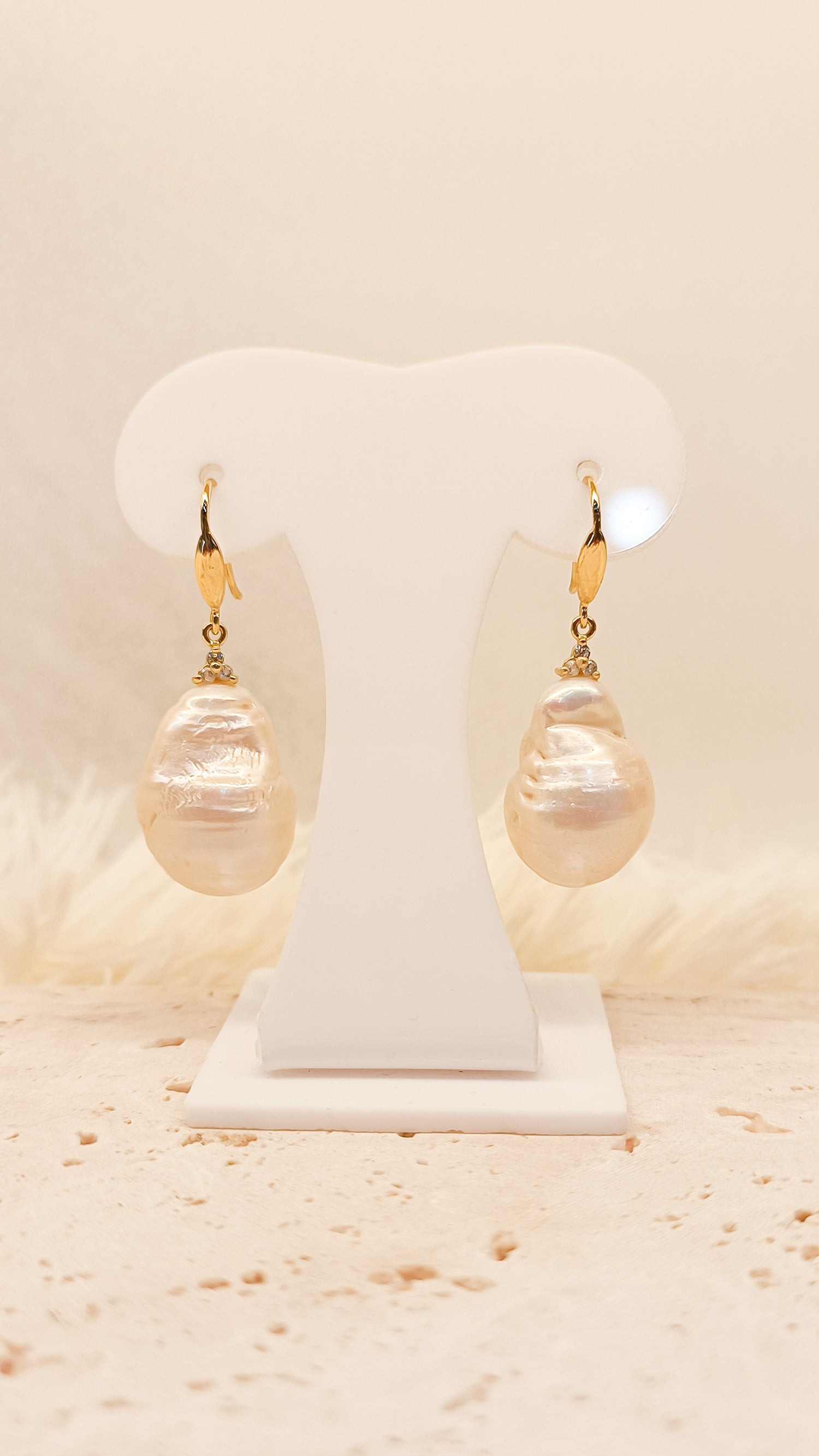 Genuine baroque freshwater pearls in micron setting with cubic zirconia stone.