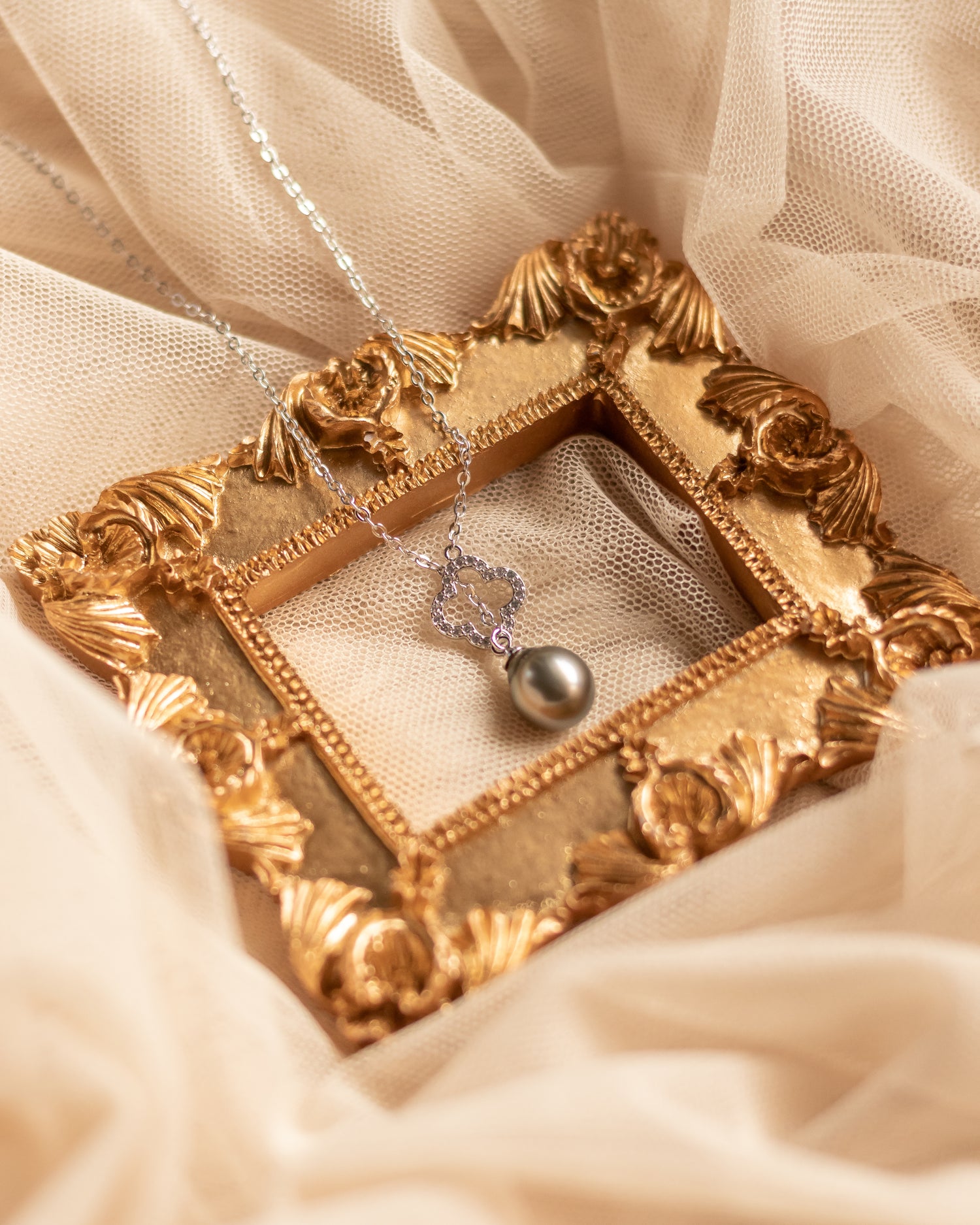 Materials: Genuine Tahitian pearl with clover design.