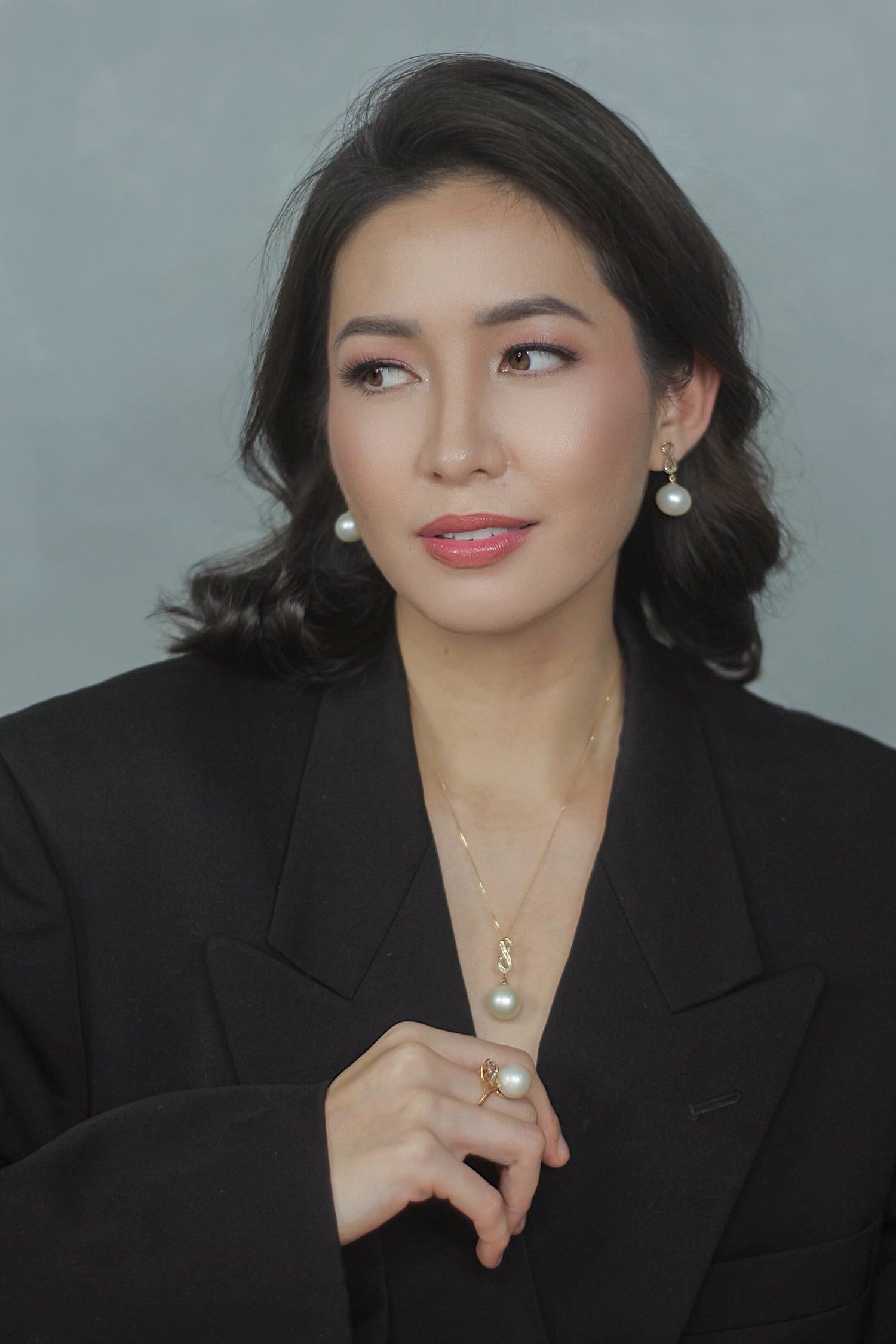 Materials: Genuine South Sea Pearls. 14-karat yellow gold with diamonds. This set includes necklace, ring and earrings only.